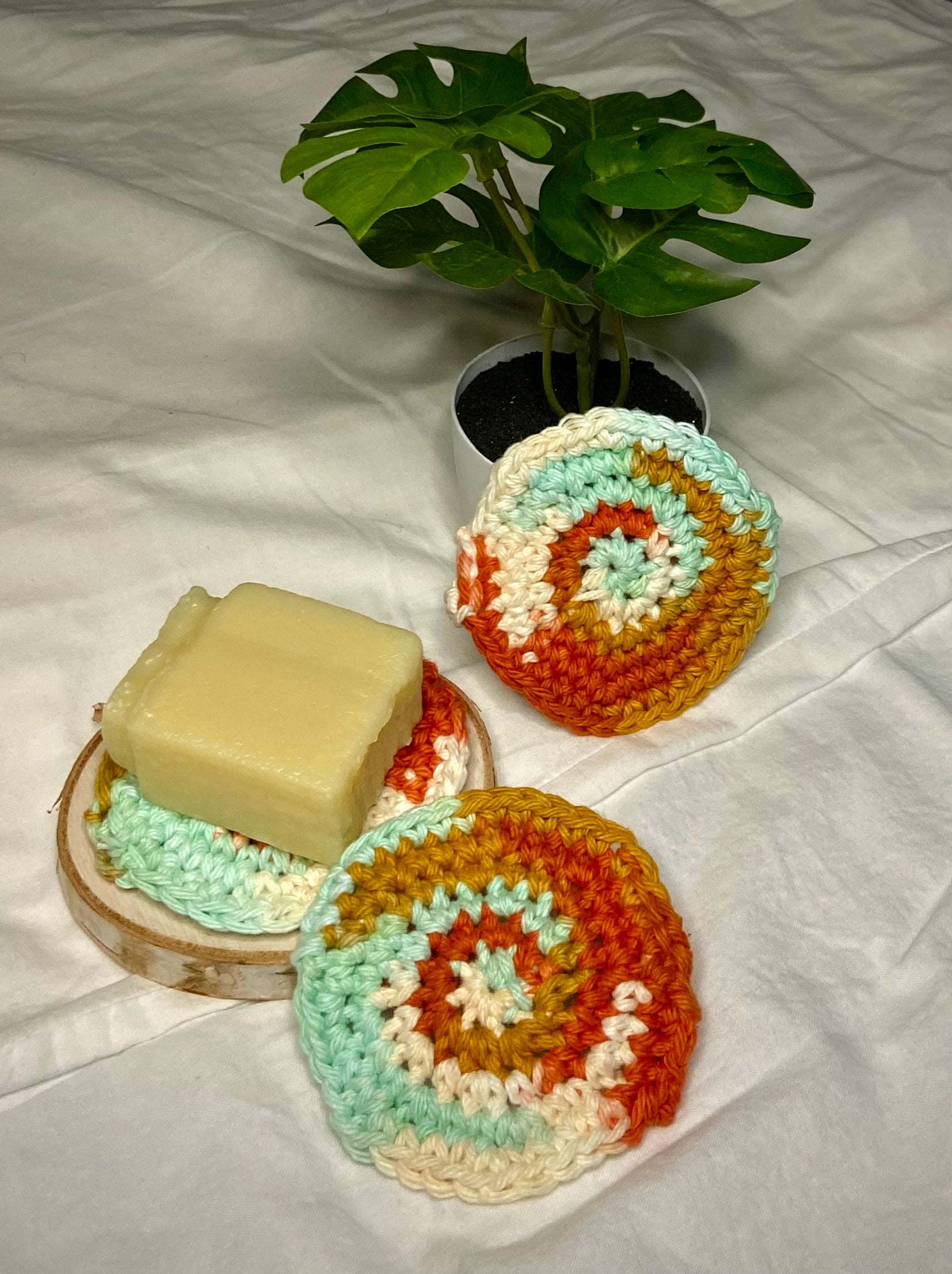 Cotton crochet face scrubs offer a sustainable alternative to your skincare routine. Handmade with care, these scrubs are soft, durable, and machine washable. They come in colors like pink, blue, green and multi-colored. Achieve soft skin and a healthy home with this product.