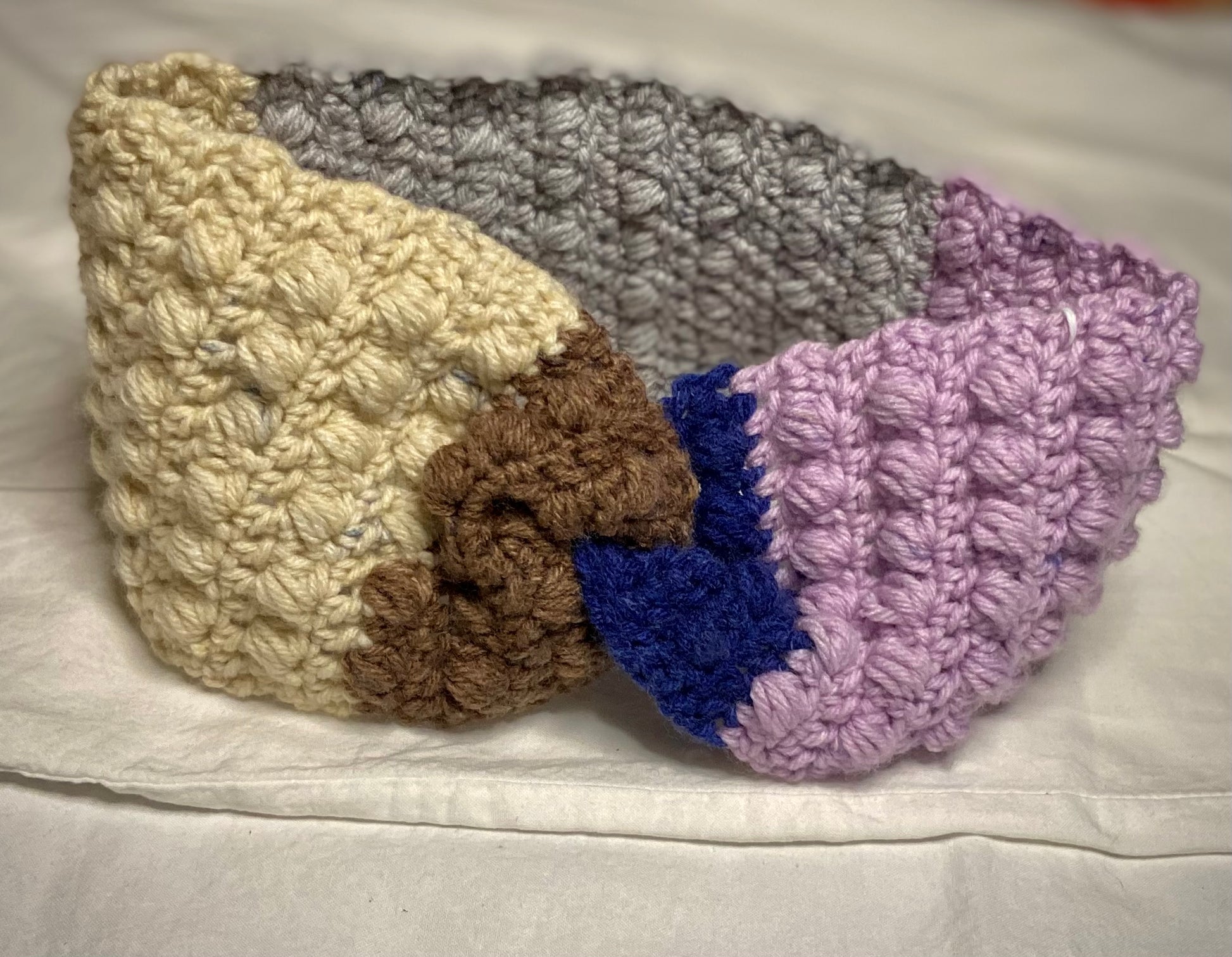 Get your own stylish and cozy ear warmer! Handmade with care, crafted to your liking and in a sustainable way. This ear warmer is multicolored and practical for daily winter use.